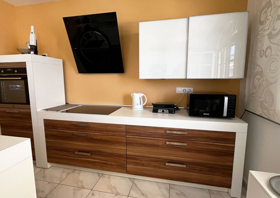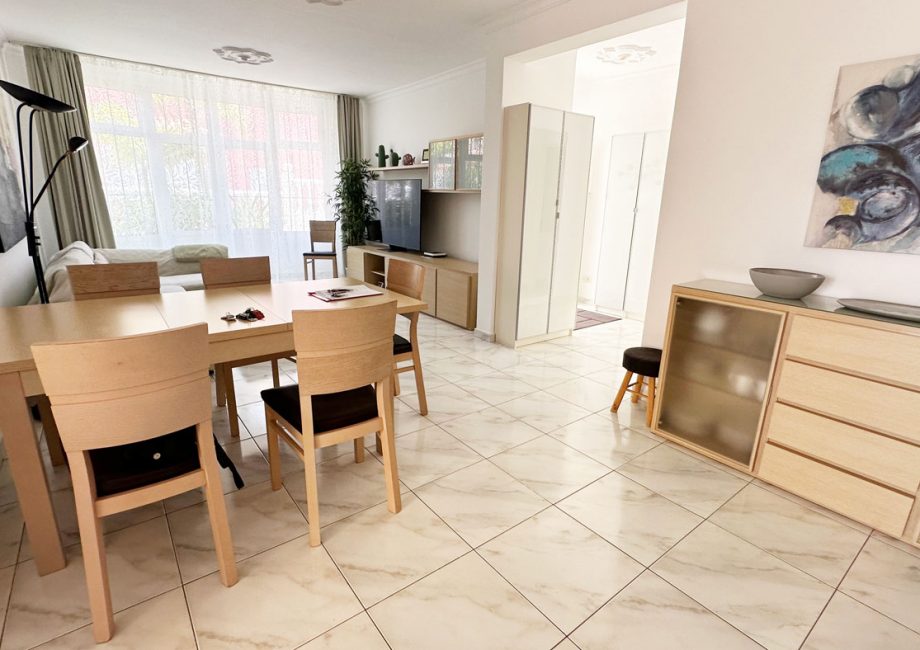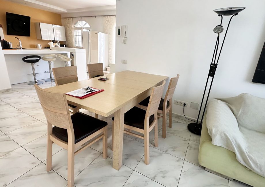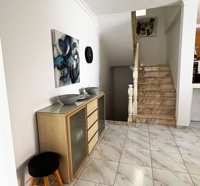The rooms are arranged on two floors. The living room, kitchen, bathroom and one bedroom are located on the same level, no stairs not even from the parking space, making it ideal for those seeking easy mobility.