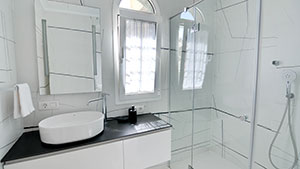 his sleek, modern double bedroom on the ground floor is designed for ultimate comfort and combines amenities with easy access.