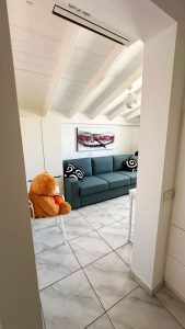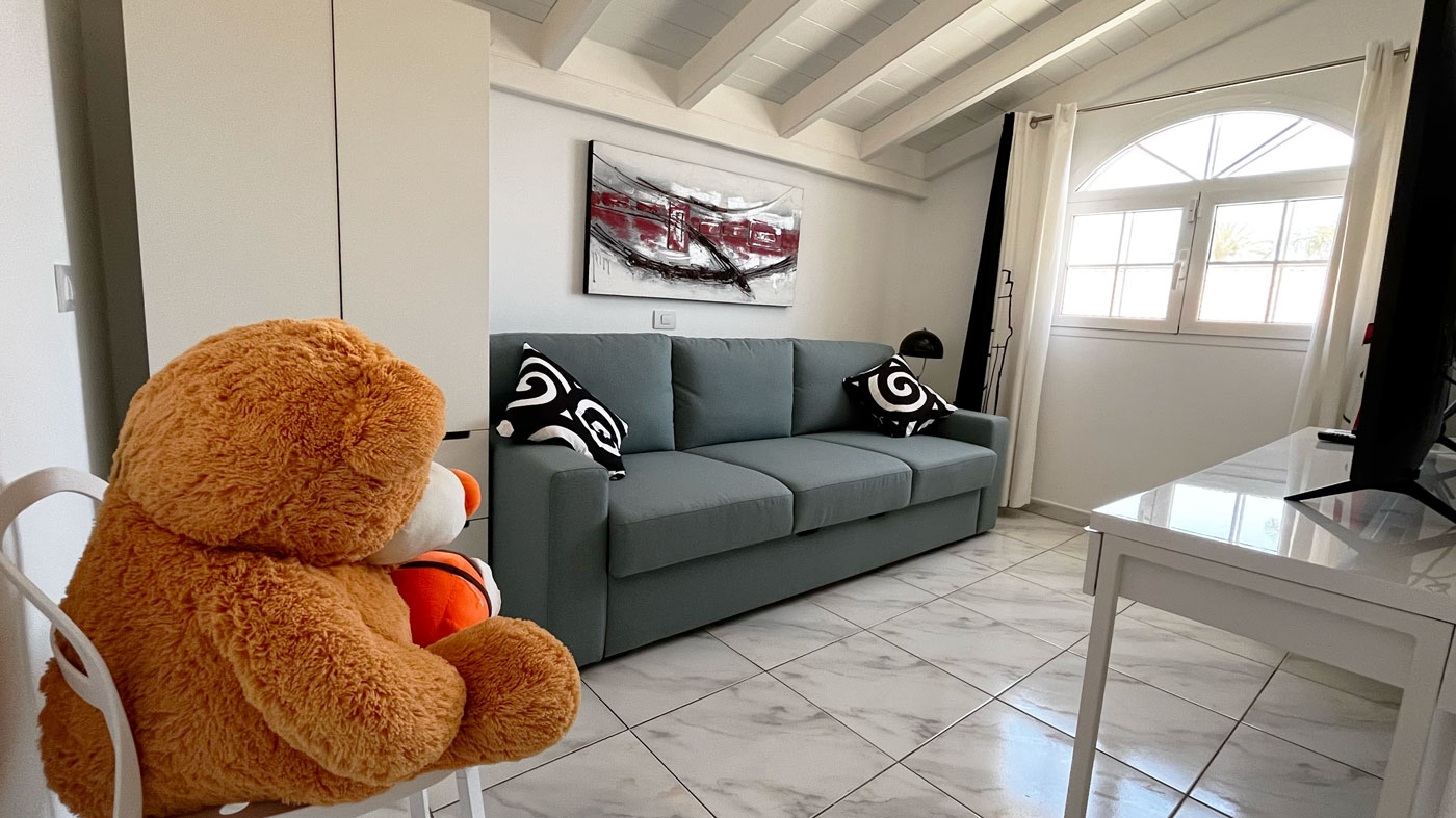 his playful yet functional children's room is designed to keep young ones entertained while parents enjoy some quiet time. Featuring a comfy sofabed that can sleep two children or two adults, it's perfect for both restful nights and fun-filled afternoons.